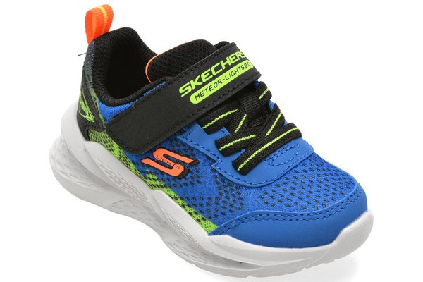 Pantofi sport SKECHERS albastri, METEOR-LIGHTS 2.0, din material textil , Pentru: Baieti , Brand: Skechers , culoare: Albastru , Material exterior: Material textil , Material talpa: Cauciuc termoplastic , Tip inchidere: Velcro . Livrare gratuita pentru comenzile de peste 299 RON acasa si in locker. Retur gratuit de acasa sau in locker.