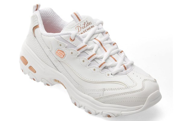 Pantofi sport SKECHERS albi, D LITES, din piele naturala , Pentru: Femei , Brand: Skechers , culoare: Alb , Material exterior: Piele naturala , Material talpa: Cauciuc termoplastic , Tip inchidere: Siret . Livrare gratuita pentru comenzile de peste 299 RON acasa si in locker. Retur gratuit de acasa sau in locker.