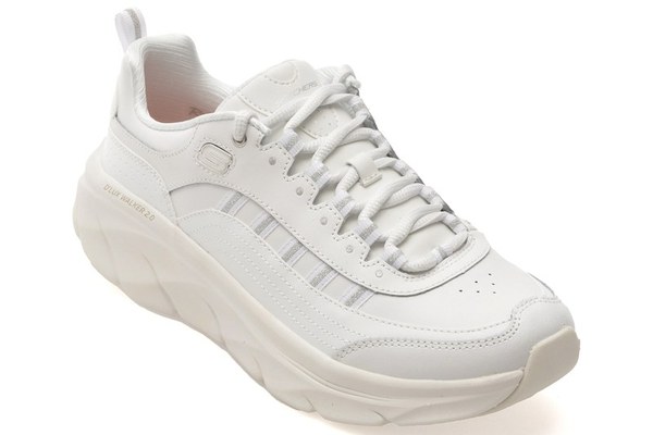 Pantofi sport SKECHERS albi, D LUX WALKER 2.0, din piele naturala , Pentru: Femei , Brand: Skechers , culoare: Alb , Material exterior: Piele naturala , Material talpa: Cauciuc termoplastic , Tip inchidere: Siret . Livrare gratuita pentru comenzile de peste 299 RON acasa si in locker. Retur gratuit de acasa sau in locker.