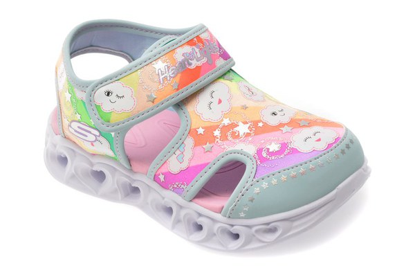 Pantofi sport SKECHERS multicolor, HEART LIGHTS, din material textil , Pentru: Fetite , Brand: Skechers , culoare: Multicolor , Material exterior: Material textil , Material talpa: Cauciuc termoplastic , Tip inchidere: Velcro . Livrare gratuita pentru comenzile de peste 299 RON acasa si in locker. Retur gratuit de acasa sau in locker.