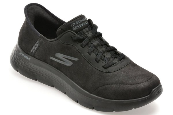 Pantofi sport SKECHERS negri, GO WALK FLEX, din material textil , Pentru: Barbati , Brand: Skechers , culoare: Negru , Material exterior: Material textil , Material talpa: Cauciuc termoplastic , Tip inchidere: Velcro . Livrare gratuita pentru comenzile de peste 299 RON acasa si in locker. Retur gratuit de acasa sau in locker.