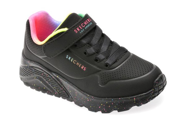 Pantofi sport SKECHERS negri, UNO LITE, din piele ecologica , Pentru: Fetite , Brand: Skechers , culoare: Negru , Material exterior: Piele ecologica , Material talpa: Cauciuc termoplastic , Tip inchidere: Velcro . Livrare gratuita pentru comenzile de peste 299 RON acasa si in locker. Retur gratuit de acasa sau in locker.