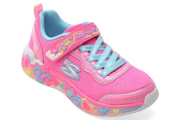 Pantofi sport SKECHERS roz, ETERNAL HEART LIGHTS, din material textil , Pentru: Fetite , Brand: Skechers , culoare: Roz , Material exterior: Material textil , Material talpa: Cauciuc termoplastic , Tip inchidere: Velcro . Livrare gratuita pentru comenzile de peste 299 RON acasa si in locker. Retur gratuit de acasa sau in locker.