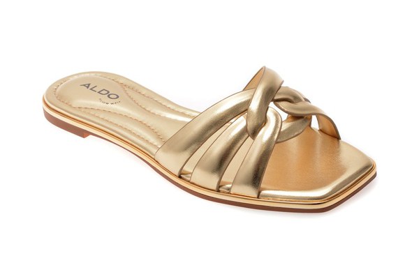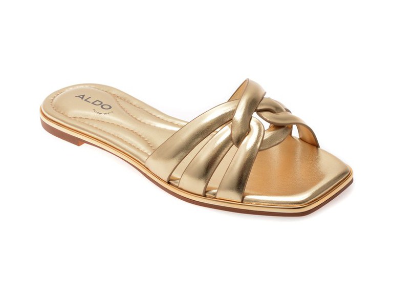 Papuci ALDO aurii, AUGUSTYA 710, din piele ecologica , Pentru: Femei , Brand: Aldo , culoare: Auriu , Material exterior: Piele ecologica , Material talpa: pvc , Tip inchidere: Slip-on . Livrare gratuita pentru comenzile de peste 299 RON acasa si in locker. Retur gratuit de acasa sau in locker.