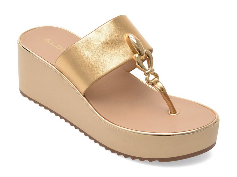 Papuci ALDO aurii, PENELOPY 711, din piele ecologica
