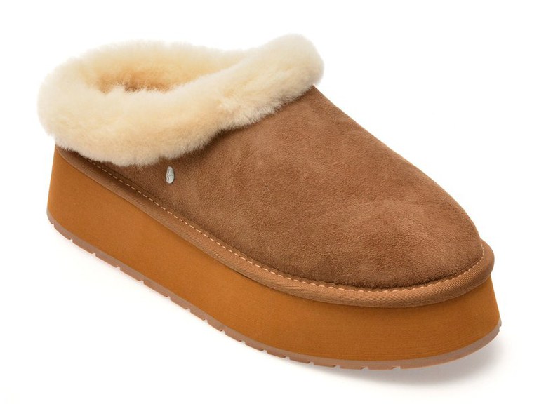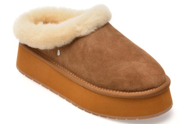 Papuci EMU maro, VIRGINIA FLARE, din piele intoarsa