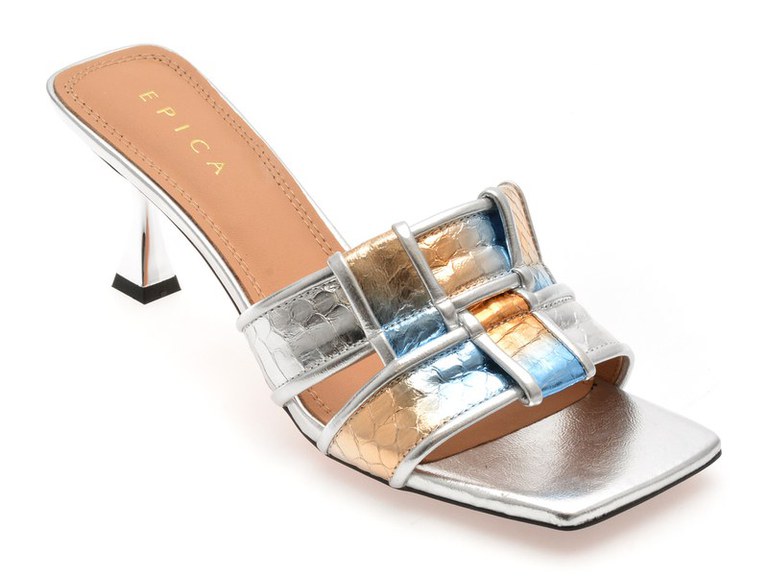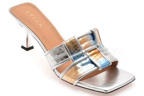 Papuci EPICA argintii, L633, din piele naturala , Pentru: Femei , Brand: Epica , culoare: Argintiu , Material exterior: Piele naturala , Material talpa: pvc , Tip inchidere: Slip-on . Livrare gratuita pentru comenzile de peste 299 RON acasa si in locker. Retur gratuit de acasa sau in locker.