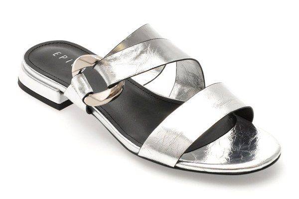 Papuci EPICA argintii, M1029, din piele naturala , Pentru: Femei , Brand: Epica , culoare: Argintiu , Material exterior: Piele naturala , Material talpa: pvc , Tip inchidere: Slip-on . Livrare gratuita pentru comenzile de peste 299 RON acasa si in locker. Retur gratuit de acasa sau in locker.