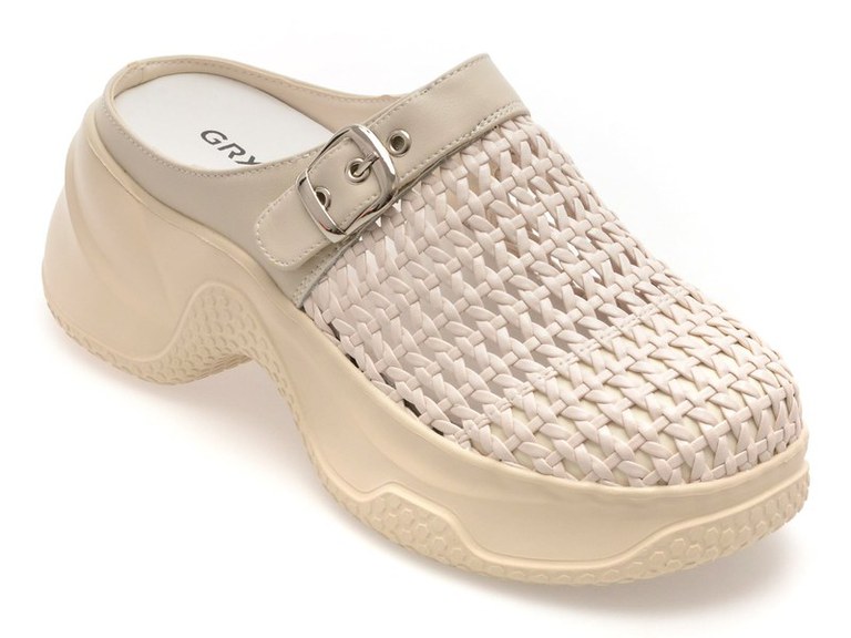 Papuci GRYXX bej, 2511, din piele ecologica , Pentru: Femei , Brand: Gryxx , culoare: Bej , Material exterior: Piele ecologica , Material talpa: Cauciuc termoplastic , Tip inchidere: Slip-on . Livrare gratuita pentru comenzile de peste 299 RON acasa si in locker. Retur gratuit de acasa sau in locker.