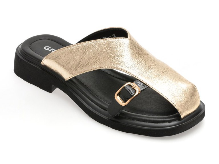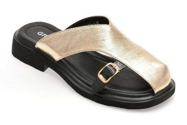 Saboti GRYXX aurii, V1302, din piele naturala , Pentru: Femei , Brand: Gryxx , culoare: Auriu , Material exterior: Piele naturala , Material talpa: pvc , Tip inchidere: Slip-on . Livrare gratuita pentru comenzile de peste 299 RON acasa si in locker. Retur gratuit de acasa sau in locker.