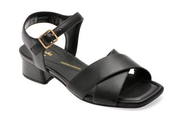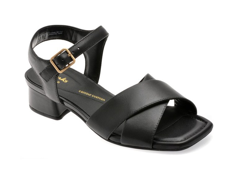 Sandale CLARKS negre, SERINA 35 CROSS, din piele naturala , Pentru: Femei , Brand: Clarks , culoare: Negru , Material exterior: Piele naturala , Material talpa: pvc , Tip inchidere: Catarama . Livrare gratuita pentru comenzile de peste 299 RON acasa si in locker. Retur gratuit de acasa sau in locker.