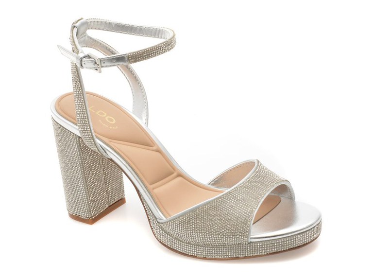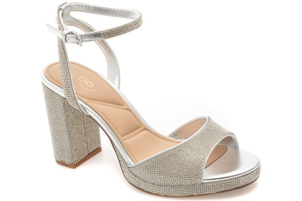 Sandale elegante ALDO argintii, ALLURING 040, din material textil