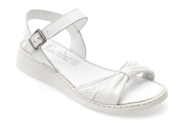 Sandale EVIDA albe, EVP104, din piele naturala
