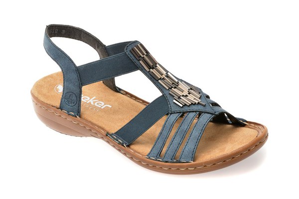 Sandale RIEKER albastre, 60800, din piele ecologica , Pentru: Femei , Brand: Rieker , culoare: Albastru , Material exterior: Piele ecologica , Material talpa: Cauciuc termoplastic , Tip inchidere: Slip-on . Livrare gratuita pentru comenzile de peste 299 RON acasa si in locker. Retur gratuit de acasa sau in locker.