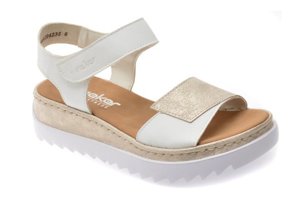 Sandale RIEKER albe, V4476, din piele ecologica , Pentru: Femei , Brand: Rieker , culoare: Alb , Material exterior: Piele ecologica , Material talpa: Cauciuc termoplastic , Tip inchidere: Velcro . Livrare gratuita pentru comenzile de peste 299 RON acasa si in locker. Retur gratuit de acasa sau in locker.