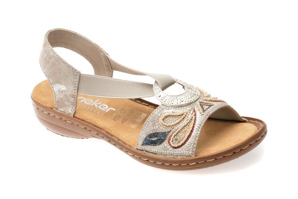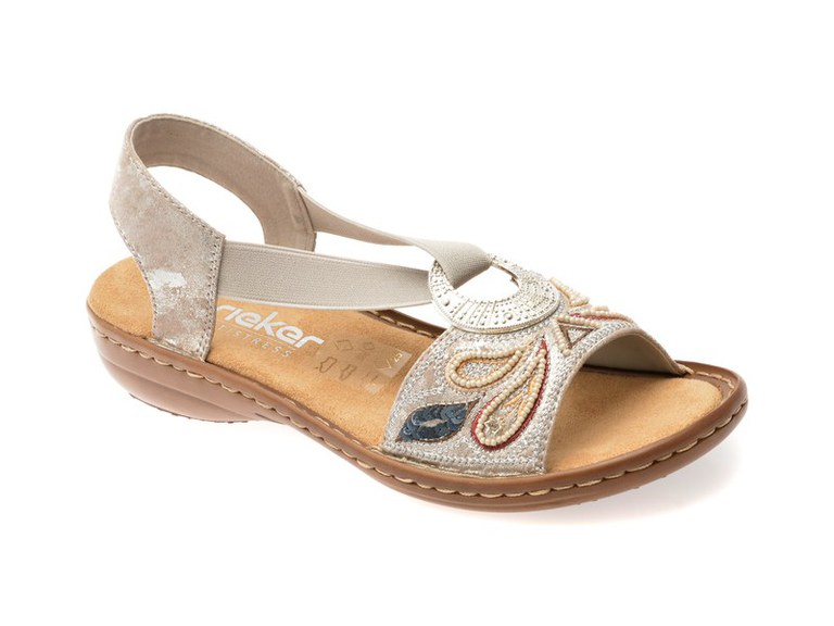 Sandale RIEKER argintii, 608B4, din piele ecologica
