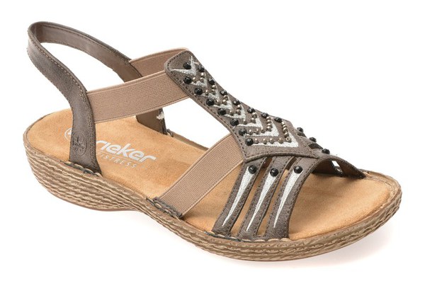 Sandale RIEKER gri, 65861, din piele ecologica , Pentru: Femei , Brand: Rieker , culoare: Gri , Material exterior: Piele ecologica , Material talpa: Cauciuc termoplastic , Tip inchidere: Slip-on . Livrare gratuita pentru comenzile de peste 299 RON acasa si in locker. Retur gratuit de acasa sau in locker.