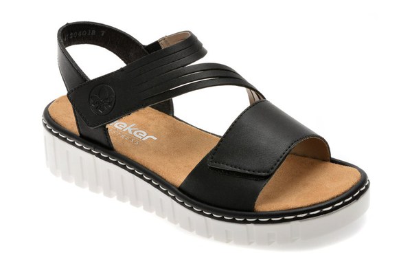 Sandale RIEKER negre, V1364, din piele ecologica