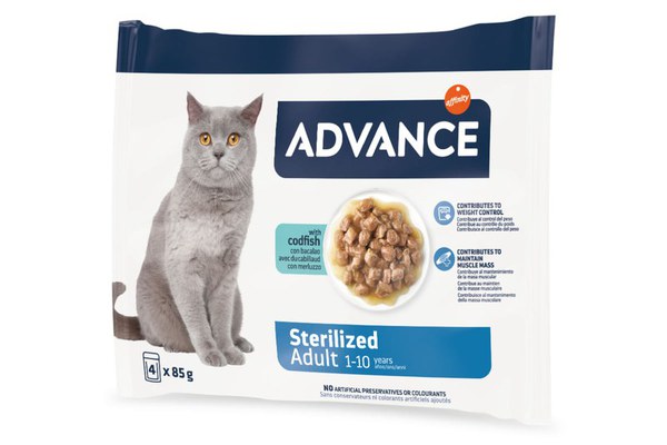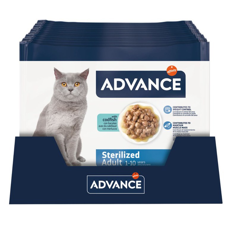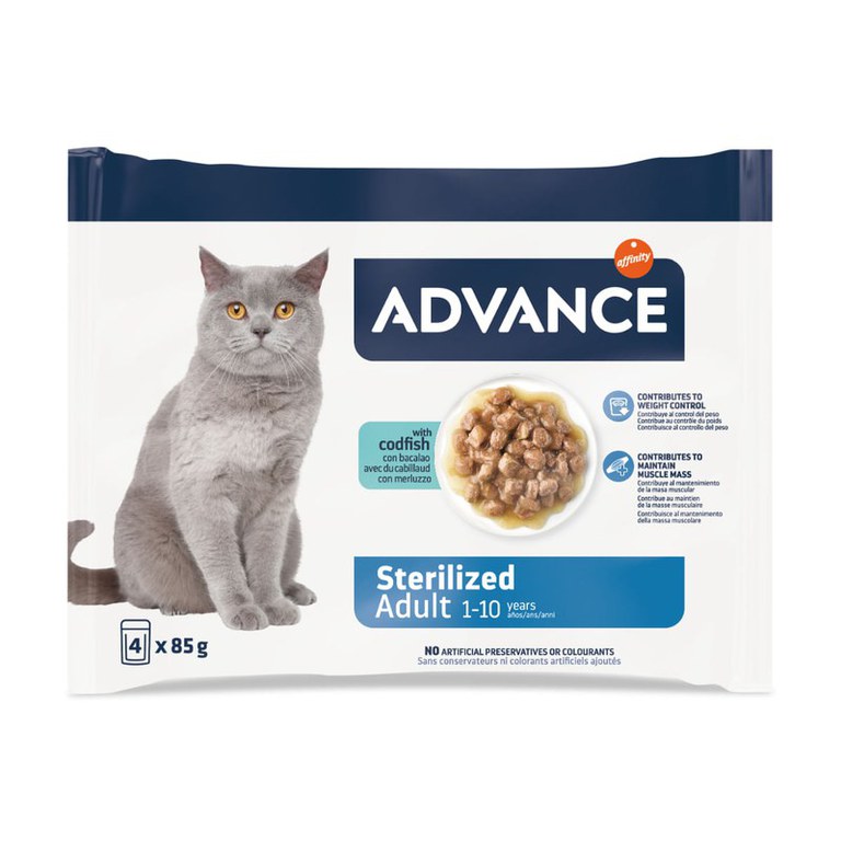 ADVANCE Sterilised, Cod, plic hrană umedă pisici sterilizate, (în sos), multipack, 85g x 4buc