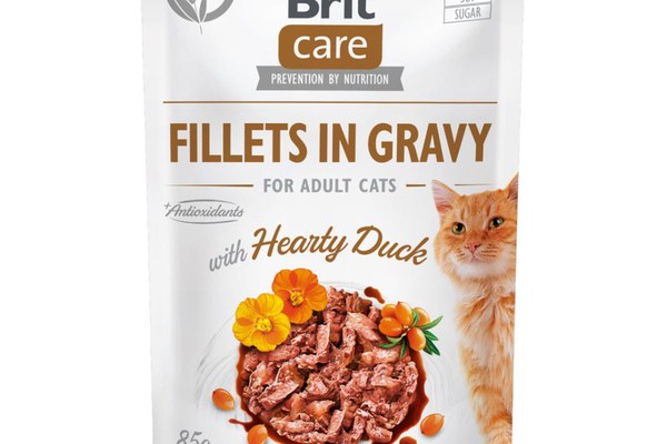 BRIT Care Fillets In Gravy, Rață, plic hrană umedă fără cereale pisici, (în sos), 85g