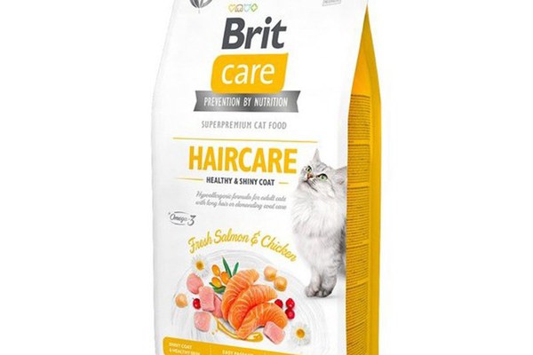BRIT Care Haircare Healthy & Shiny Coat, Somon și Pui, hrană uscată fără cereale pisici, piele și blană, 7kg