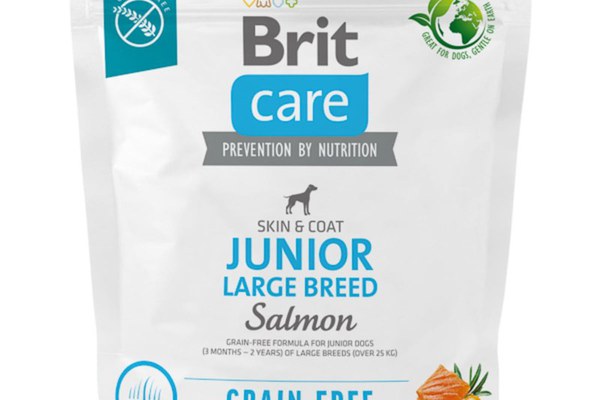 BRIT Care, L-XL, Somon, hrană uscată fără cereale câini junior, piele & blană BRIT Care Grain-Free Junior Large Breed, L-XL, Somon, hrană uscată fără cereale câini junior, piele & blană, 1kg