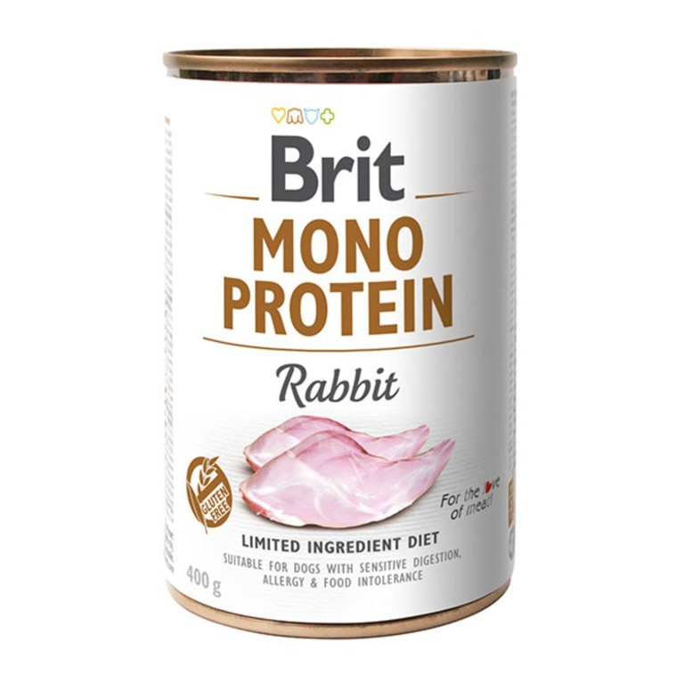 BRIT Mono Protein, Iepure, conservă hrană umedă monoproteică fără cereale câini, (pate), 400g