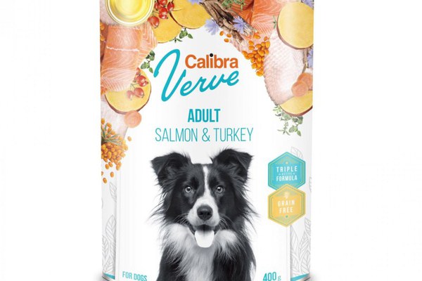 CALIBRA Verve GF, XS-XL, Somon și Curcan, conservă hrană umedă fără cereale câini, (pate), 400g