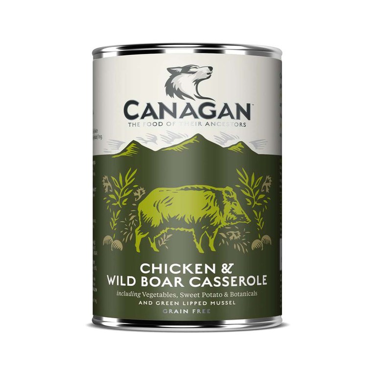 CANAGAN Chicken&Wild Boar Casserole, XS-XL, Pui și Mistreț, conservă hrană umedă fără cereale câini junior & adult, (în supă), 400g