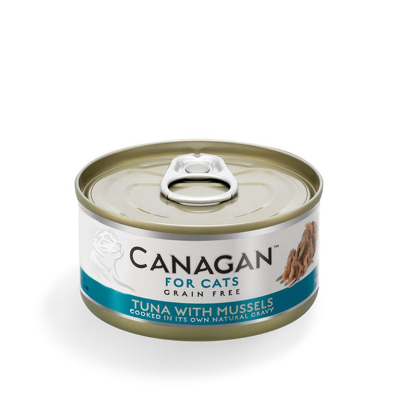 CANAGAN, Ton și Scoici, conservă hrană umedă fără cereale pisici junior & adult, (în suc propriu), 75g