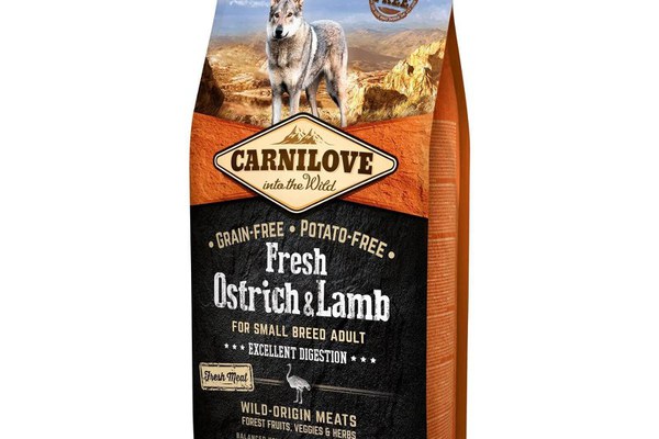 CARNILOVE Fresh Excellent Digestion XS-S, Struț și Miel, hrană uscată fără cereale câini, sensibilitați digestive, 1.5kg