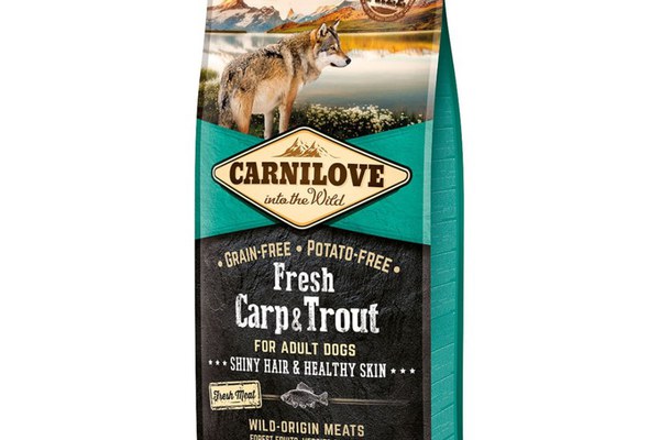 CARNILOVE Fresh Hair & Skin S-XL, Crap și Păstrăv, hrană uscată fără cereale câini, piele si blană, 12kg