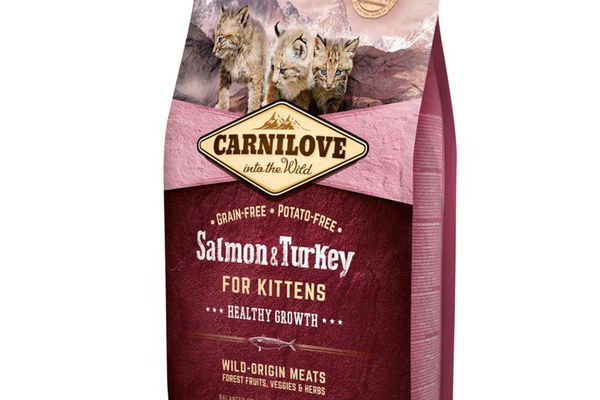 CARNILOVE Healthy Growth Kitten, Somon și Curcan, hrană uscată fără cereale pisici junior, 2kg