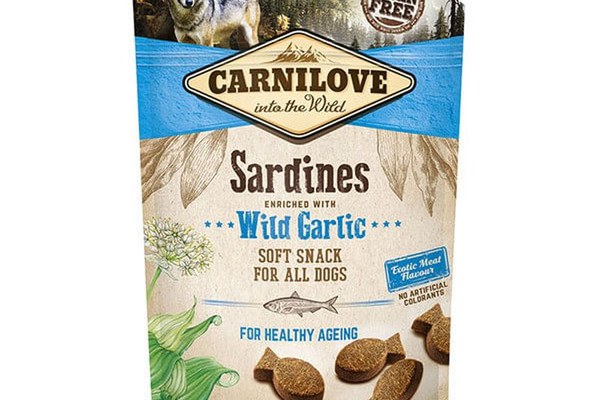 CARNILOVE Semi Moist Snack, Sardine cu Usturoi Sălbatic, recompense funcționale fără cereale câini seniori, 200g