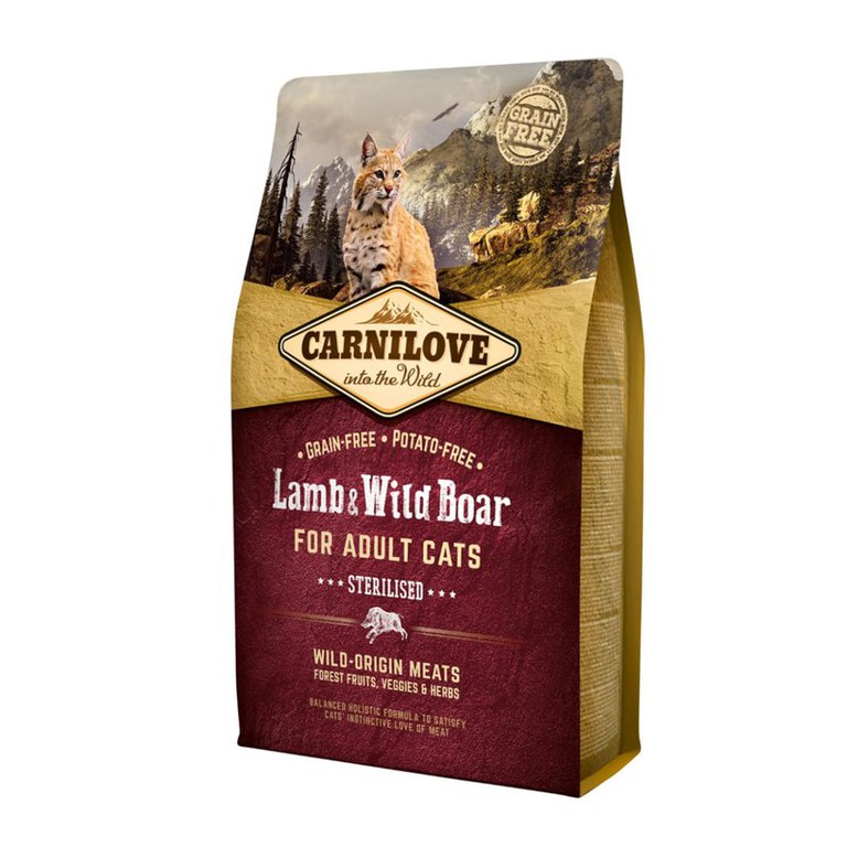 CARNILOVE Sterilised, Miel și Mistreț, hrană uscată fără cereale pisici sterilizate, 2kg