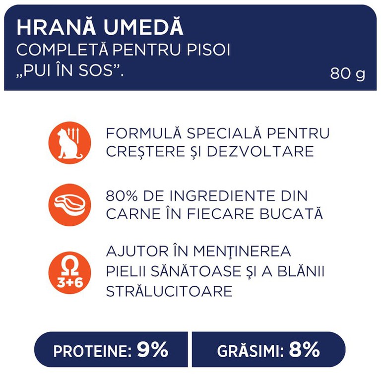 CLUB 4 PAWS Premium Kitten, Pui, hrană umedă pisici junior, (în sos) CLUB 4 PAWS Premium Kitten, Pui, plic hrană umedă pisici junior, (în sos), 80g