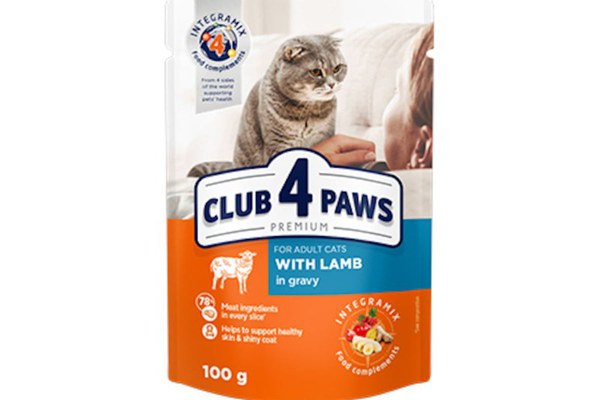CLUB 4 PAWS Premium, Miel, hrană umedă pisici, (în sos) CLUB 4 PAWS Premium, Miel, plic hrană umedă pisici, (în sos), 100g