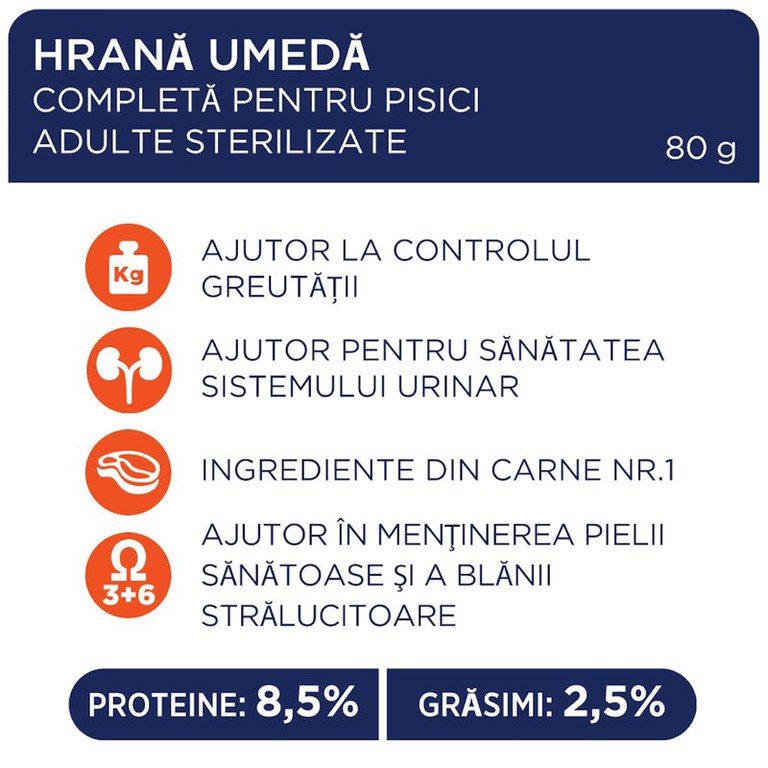 CLUB 4 PAWS Premium Sterilised, Pui, hrană umedă pisici sterilizate CLUB 4 PAWS Premium Sterilised, Pui, plic hrană umedă pisici sterilizate, 80g