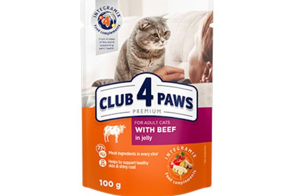 CLUB 4 PAWS Premium, Vită, hrană umedă pisici, Vită, (în sos) CLUB 4 PAWS Premium, Vită, plic hrană umedă pisici, (în sos), 100g