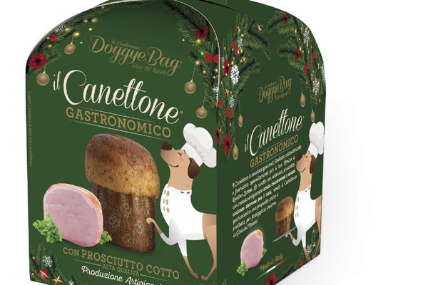DOGGYEBAG Christmas Canettone Gastronomic, XS-XL, Prosciutto Cotto, cutie recompense câini, 125g