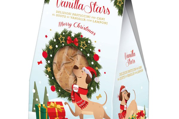 DOGGYEBAG Christmas Vanilla Stars, XS-XL, Vanilie și Zmeură, punguță recompense câini, 180g