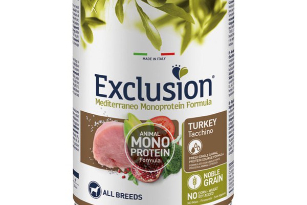 EXCLUSION Mediterraneo Monoprotein Formula, XS-XL, Curcan, conservă hrană umedă monoproteică câini, (pate), 400g