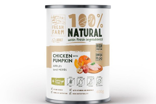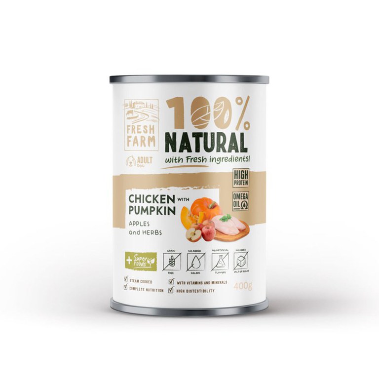 FRESH FARM Coarse, XS-XL, Pui și dovleac, conservă hrană umedă fără cereale câini, (pate), 400g