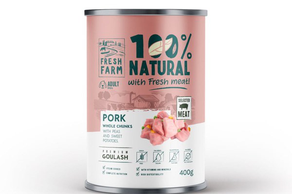 FRESH FARM Goulash, XS-XL, Porc, conservă hrană umedă fără cereale câini, (în supă), 400g