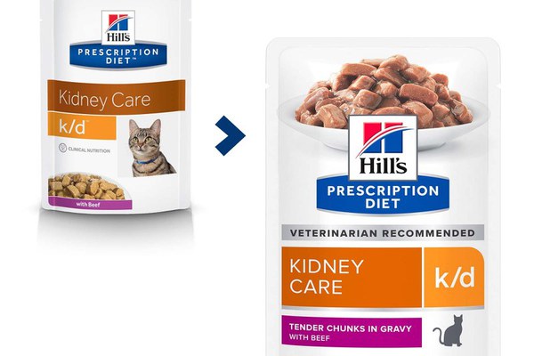 HILL'S Prescription Diet k/d Kidney Care, Vită, dietă veterinară pisici, plic hrană umedă, sistem renal, 85g x 12buc