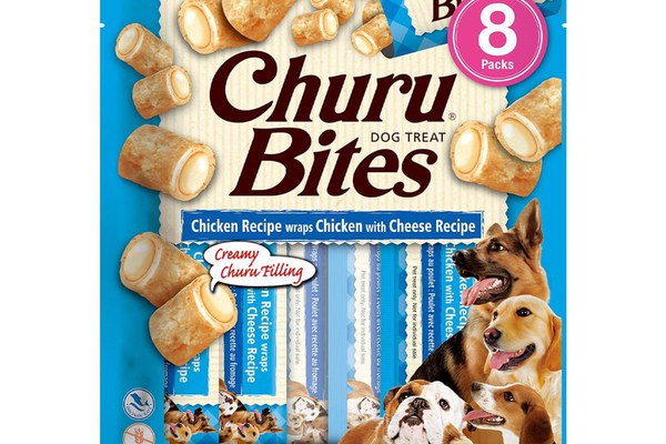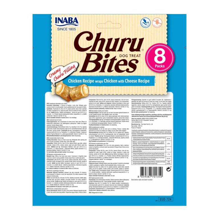 INABA Churu Bites, Pui cu Brânză, recompense fără cereale câini, pernute umplute, 12g x 8