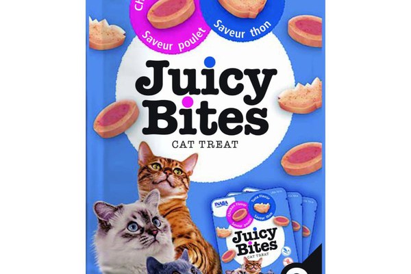 INABA Churu Juicy Bites, Ton și Pui, punguță recompense fără cereale pisici, semimoist, 33.9g