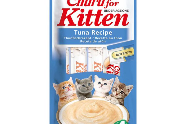 INABA Churu Kitten, Ton,, tub recompense fără cereale pisici junior, (piure) INABA Churu Kitten, Ton, plic, tub recompense fără cereale pisici junior, (piure), 56g