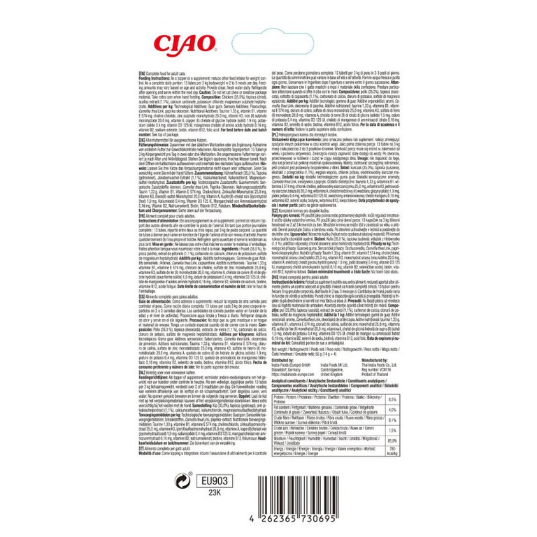 INABA Churu Meal Topper, Ton și Scoici, plic, tub recompense fără cereale pisici, (piure), 56g