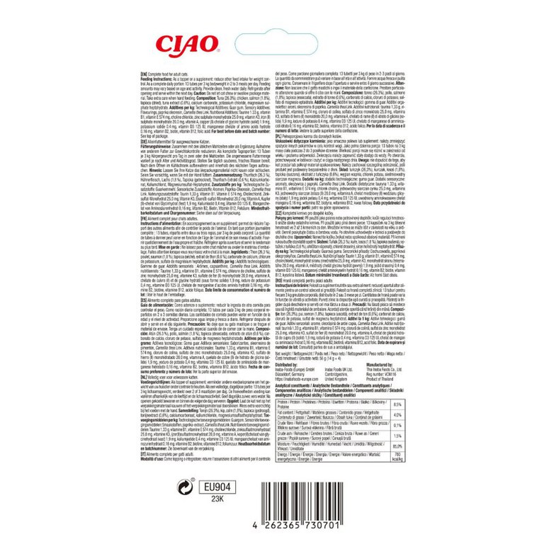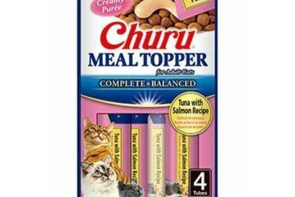 INABA Churu Meal Topper, Ton și Somon, plic, tub recompense fără cereale pisici, (piure), 56g